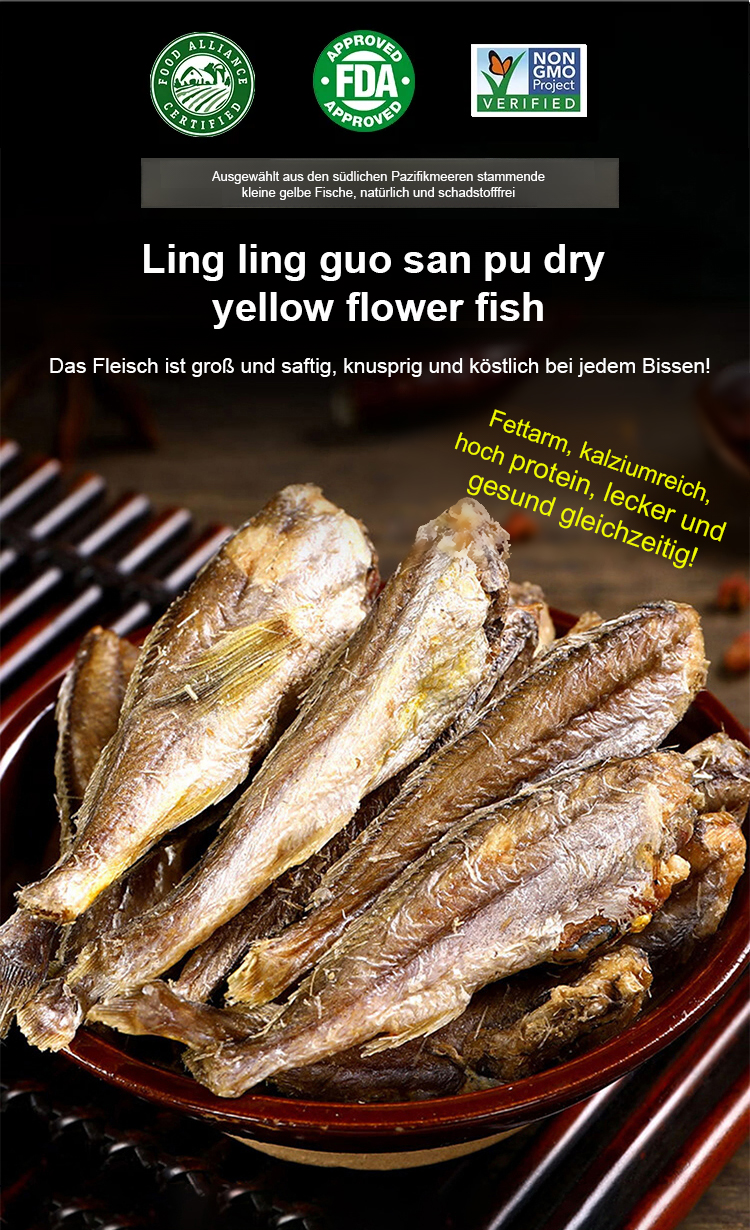 [2 FÜR 1 AKTION] knuspriger Gelbfisch aus pazifischem Wildfang | ohne Öl und Zusatzstoffe | kalorienarmer High-Protein Snack ohne Reue.